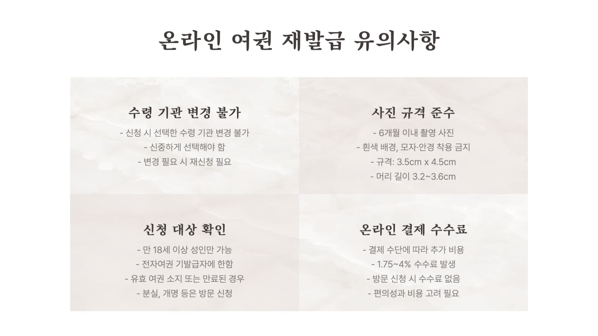 - 최근 6개월 이내 촬영한 여권용 증명사진 필수