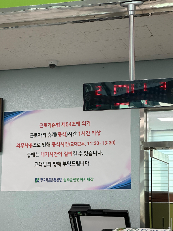 이로써 자동변속기 차량만 운전할 수 있는 1종 보통 면허를 취득할 수 있게 되었습니다. 저는 원주에 있는 자동차 운전면허시험장에 문의를 한 후 방문하였습니다. 면허시험장에 들어가 보니, 가장 눈에 띄는 플래카드 내용이었습니다.
