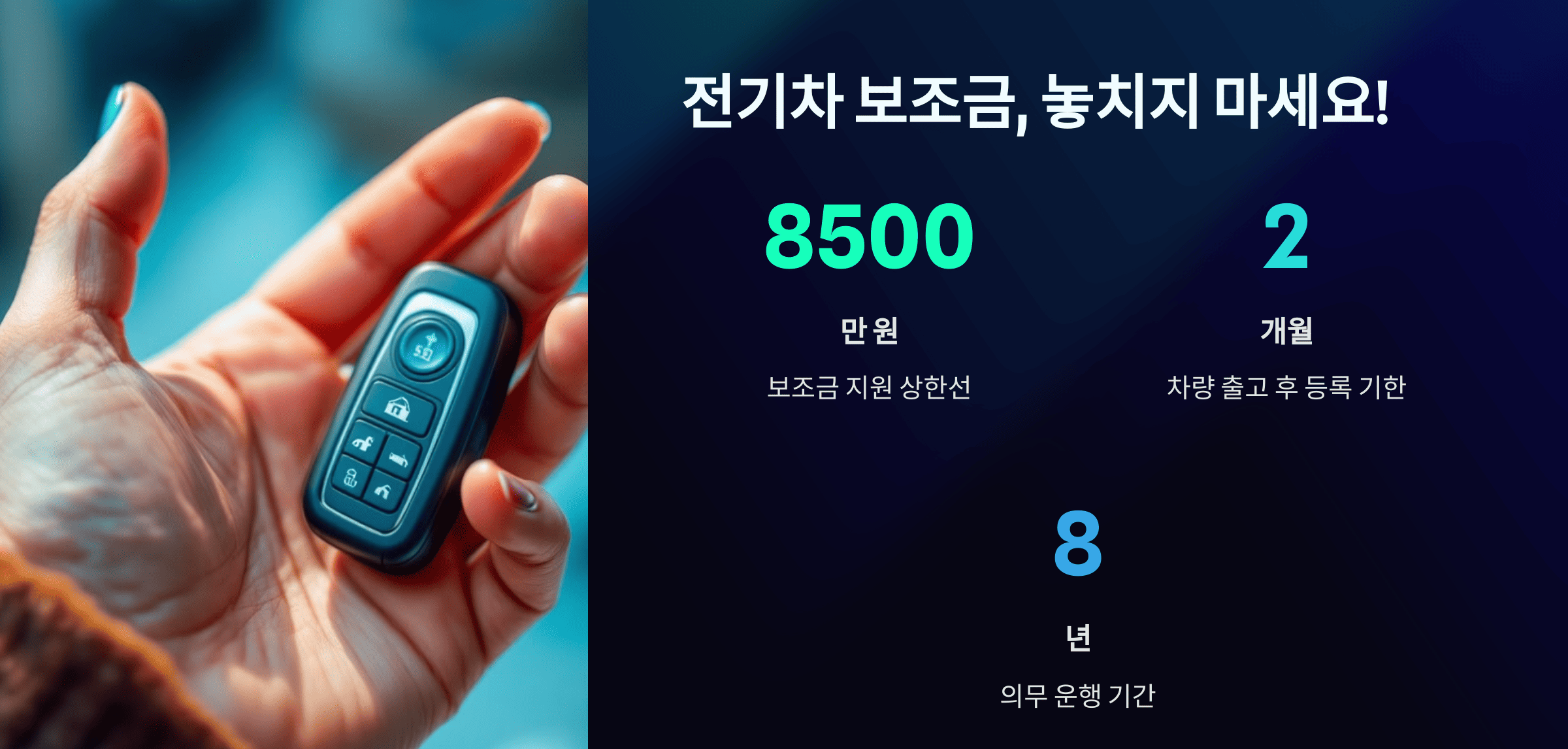 📌 전기차 보조금을 받으려면 차량 가격이 8,500만 원 미만이어야 합니다.