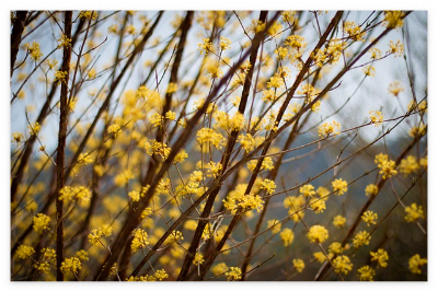 - 200년 수령의 산수유나무 3만 그루가 피워내는 노란 꽃길 풍경